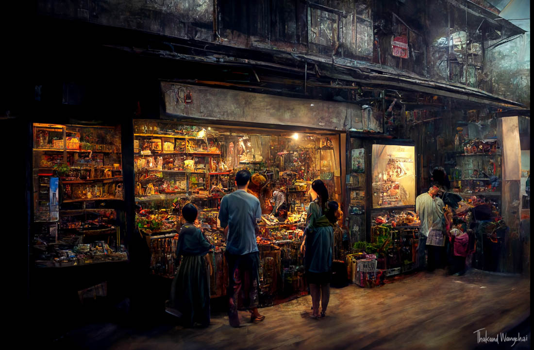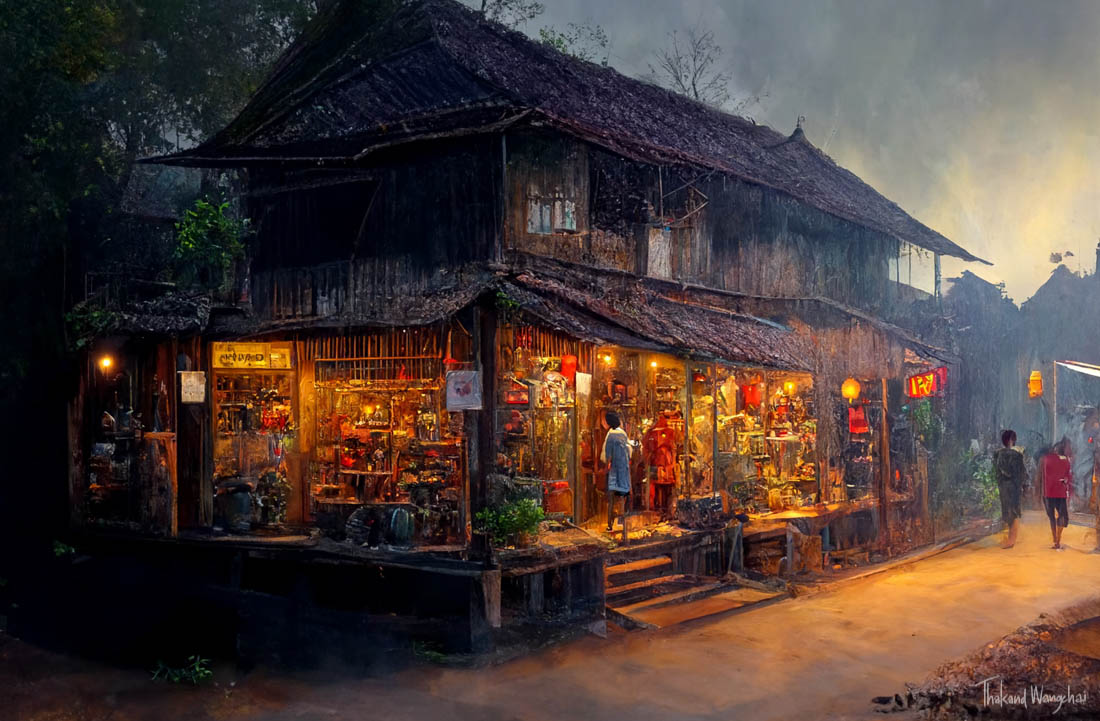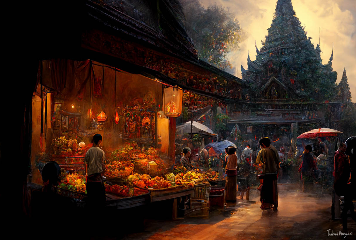 There are very talented artists in Thailand. Some paintings price is 1- 4.000 thb. Also prints.
