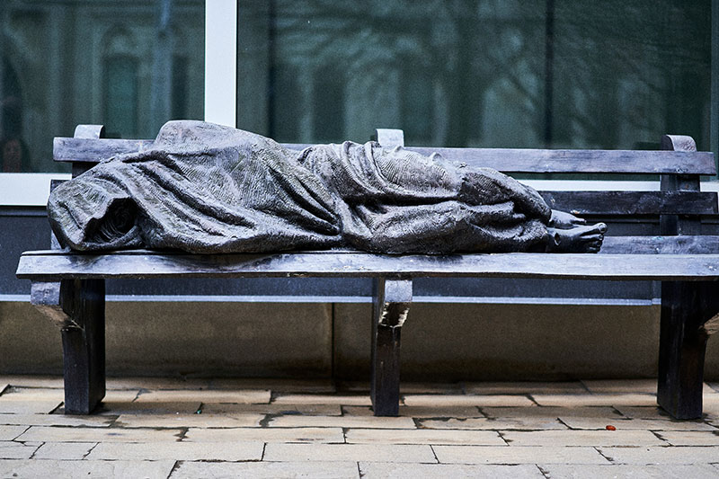 People remain homeless, hungry, and isolated; healthcare is overwhelmed.